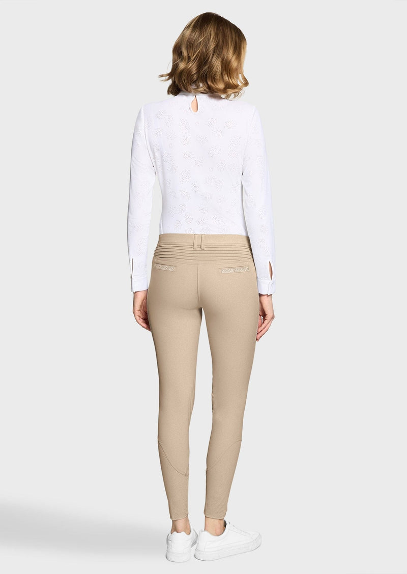 Breeches with high stretch, wear-resistant fabric; second skin effect; silicone knee grip; UV protection; embellished with Swarovski® crystals