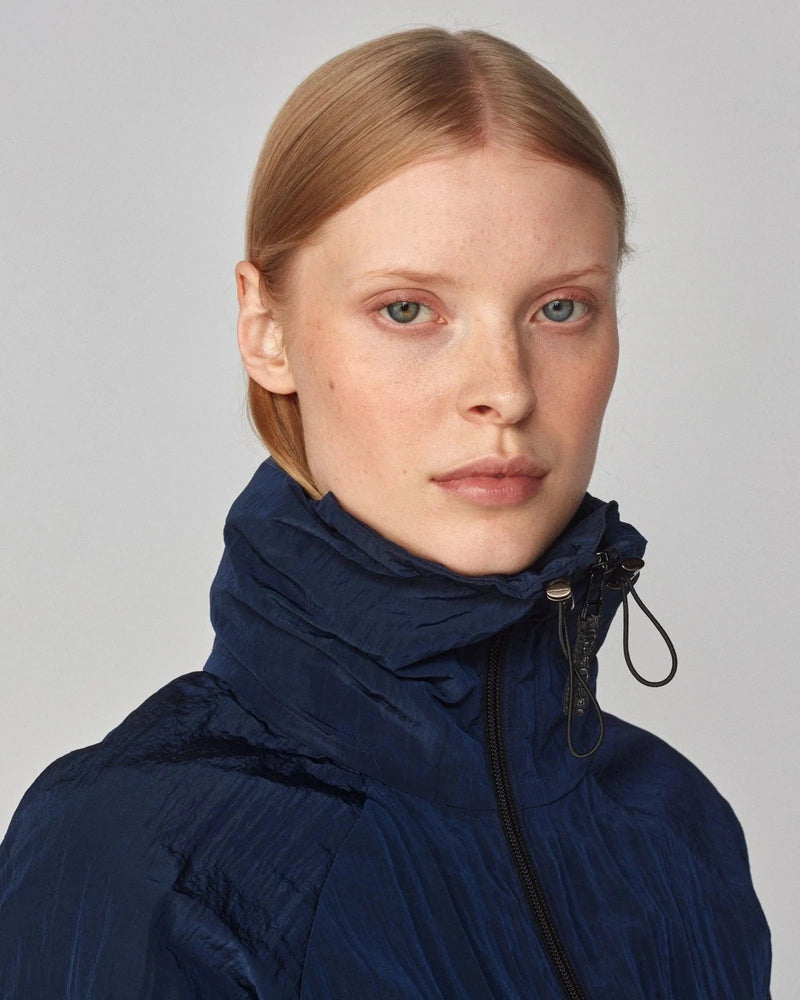 A technical riding jacket that protects against wind and light rain. Cut from an ultra-light, water-resistant fabric that is quick drying and breathable. Features two large zip pockets in the front and an optional hood that can be utilized comfortably over a helmet or tucked into the neck of the jacket. Fabric from Italy, sewn in Europe.