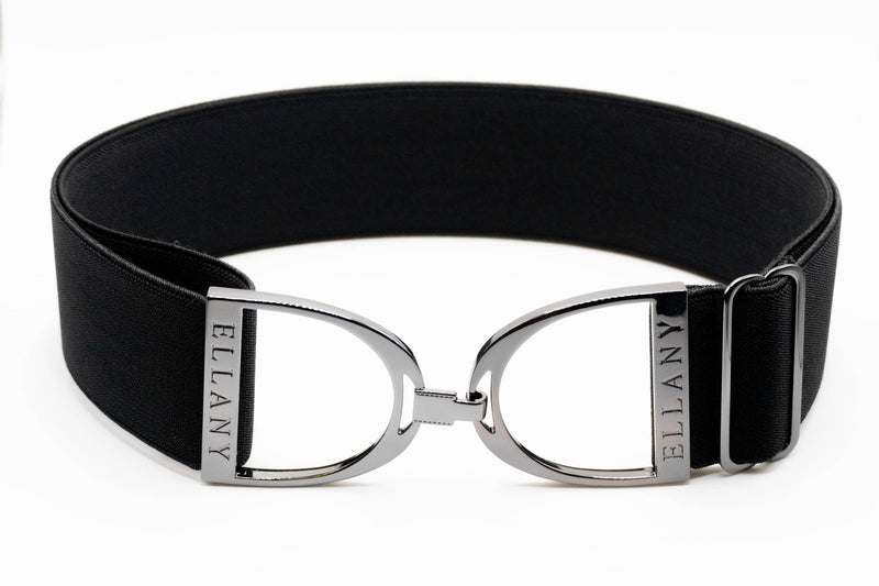 Huston x Ellany - Black - 2" Gunmetal Stirrup Equestrian Elastic Belt