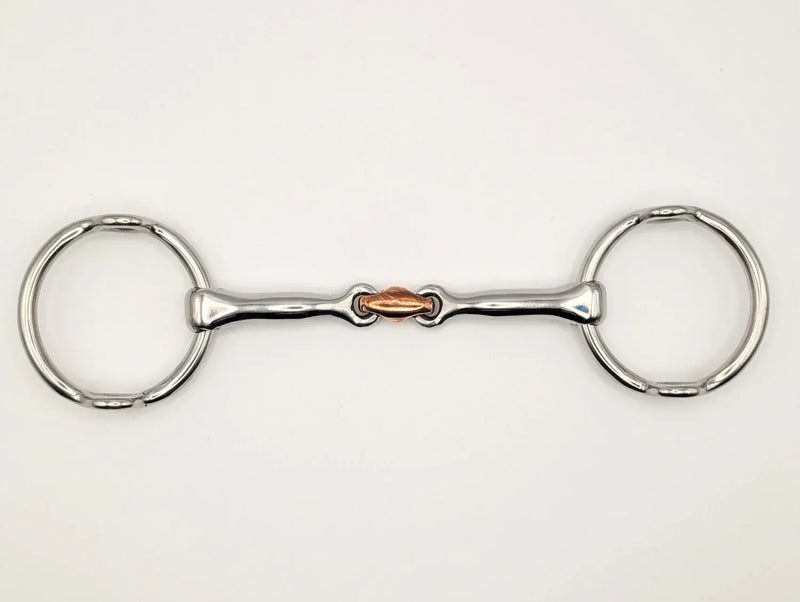 The Pandaponyium Loose Ring Copper Oval Gag is designed for ponies who need lift and leverage without sacrificing feel. Featuring a double-jointed mouthpiece with a copper oval link, this bit encourages softness, salivation, and steady contact. The loose ring cheekpieces offer increased mobility, helping maintain a light connection while the gag action provides added control when needed.